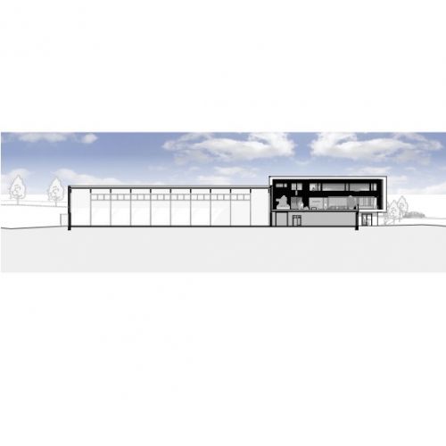 Anbau einer Produktionshalle inklusive eines Bürogebäudes an eine bestehende Produktionshalle. Der Flachdachanbau bietet mehr Fläche zur Produktion, Büroräume und eine großzügige Dachterrasse.